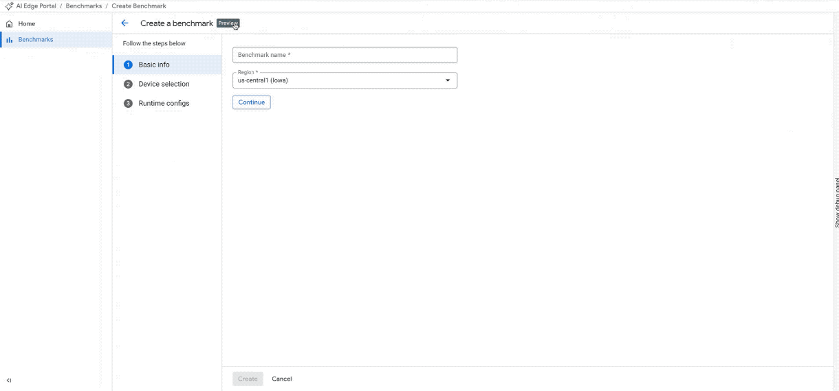 Create a New Benchmark Job on 100+ Devices. (Note: GIF is accelerated and edited for brevity)